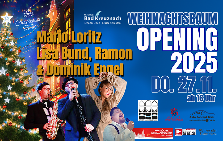Mario Loritz, Lisa Bund, Ramon und Dominik Engel, werden mit ihren Auftritten für weihnachtliche Stimmung und festliche Klänge sorgen.